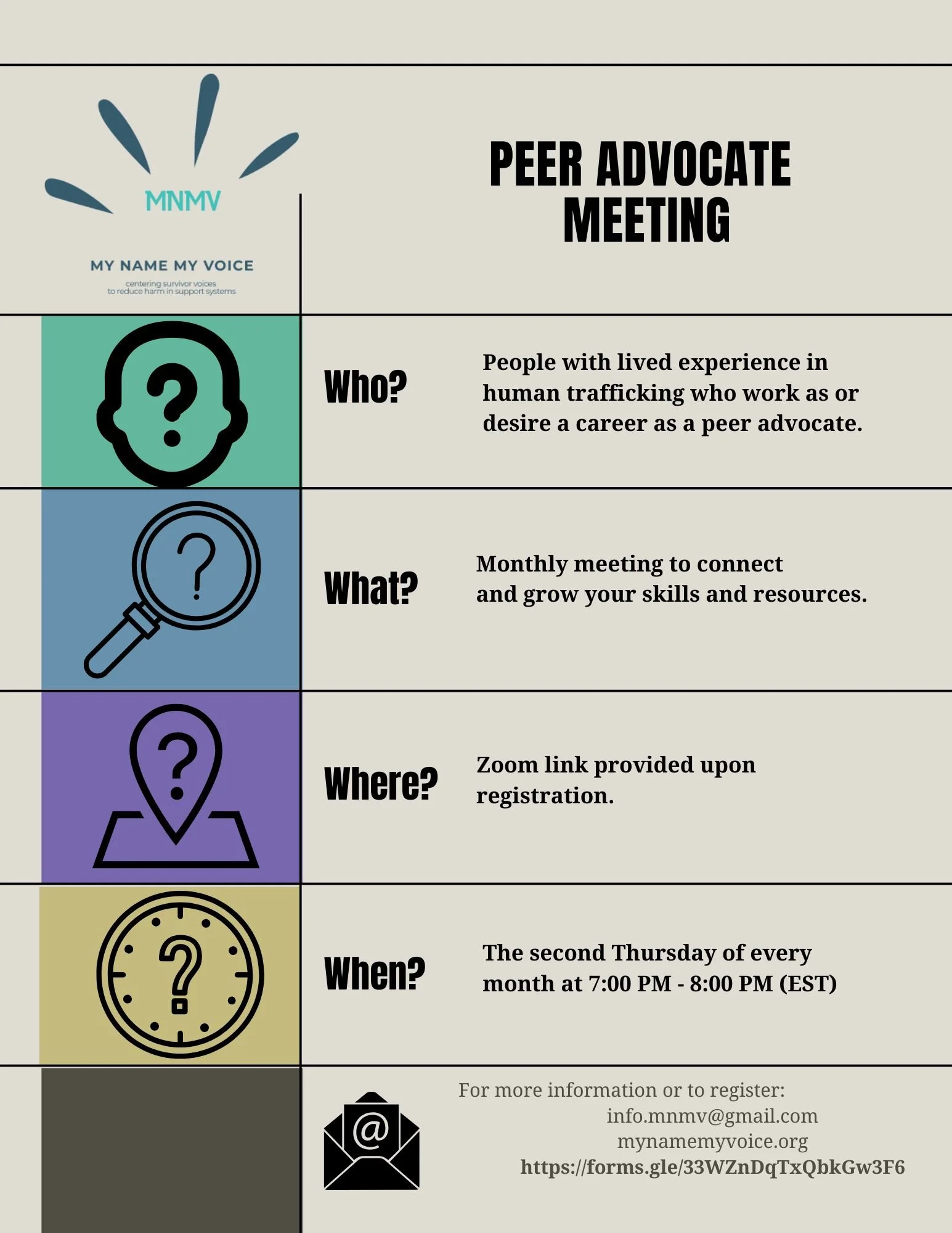 Survivors of HT who currently work as a peer advocate or desire to work as a peer advocate